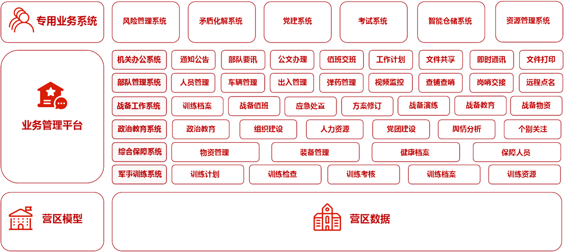 軍營(yíng)專用業(yè)務(wù)系統(tǒng)包含軍營(yíng)風(fēng)險(xiǎn)管理系統(tǒng)和矛盾化解系統(tǒng)。